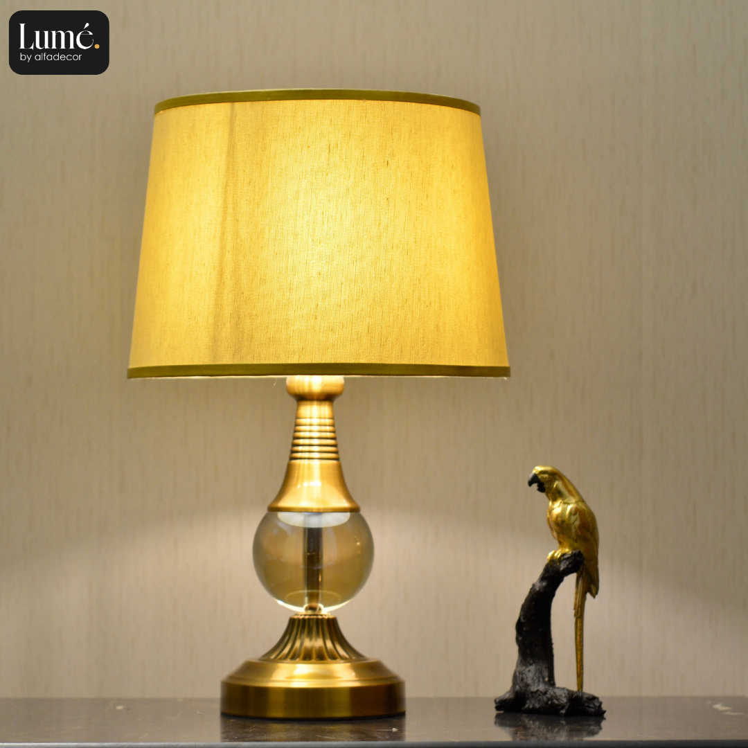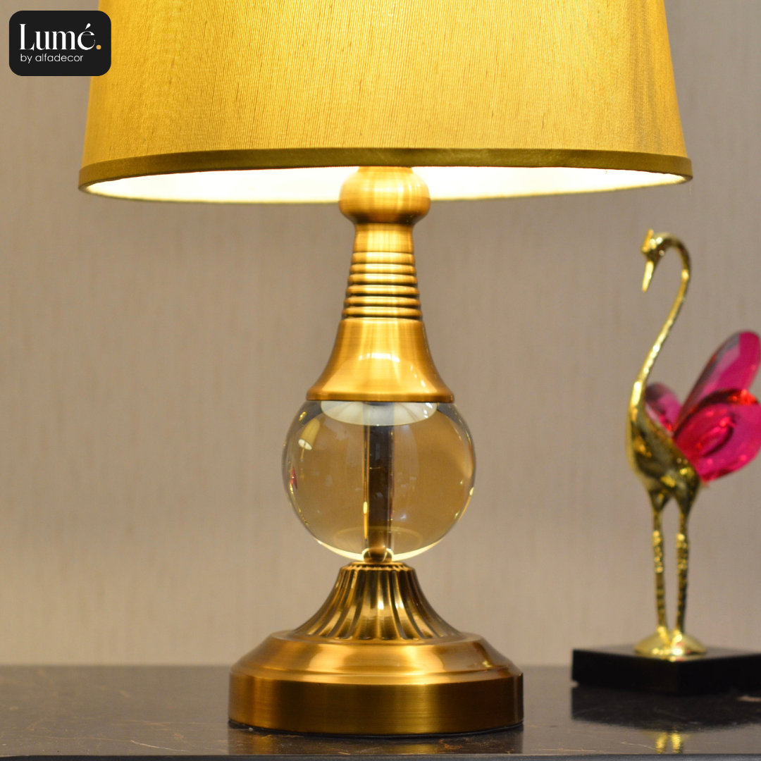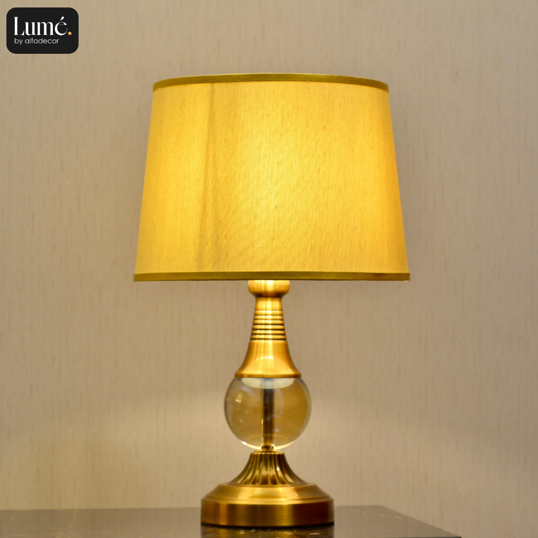The Clara Crystal Orb Lamp by Lumé combines clarity and charm. A transparent glass orb rests within a golden metal frame, catching and reflecting light in graceful harmony. The soft linen shade complements its form, producing a warm, sophisticated ambiance. Perfect for bedrooms or sitting areas, Clara’s design evokes gentle glamour — where simplicity meets sparkle. The combination of glass and metal adds modern refinement to classic decor, creating a luminous piece that feels both timeless and contemporary. Clara is more than a lamp — it’s poetry in metal and glass.