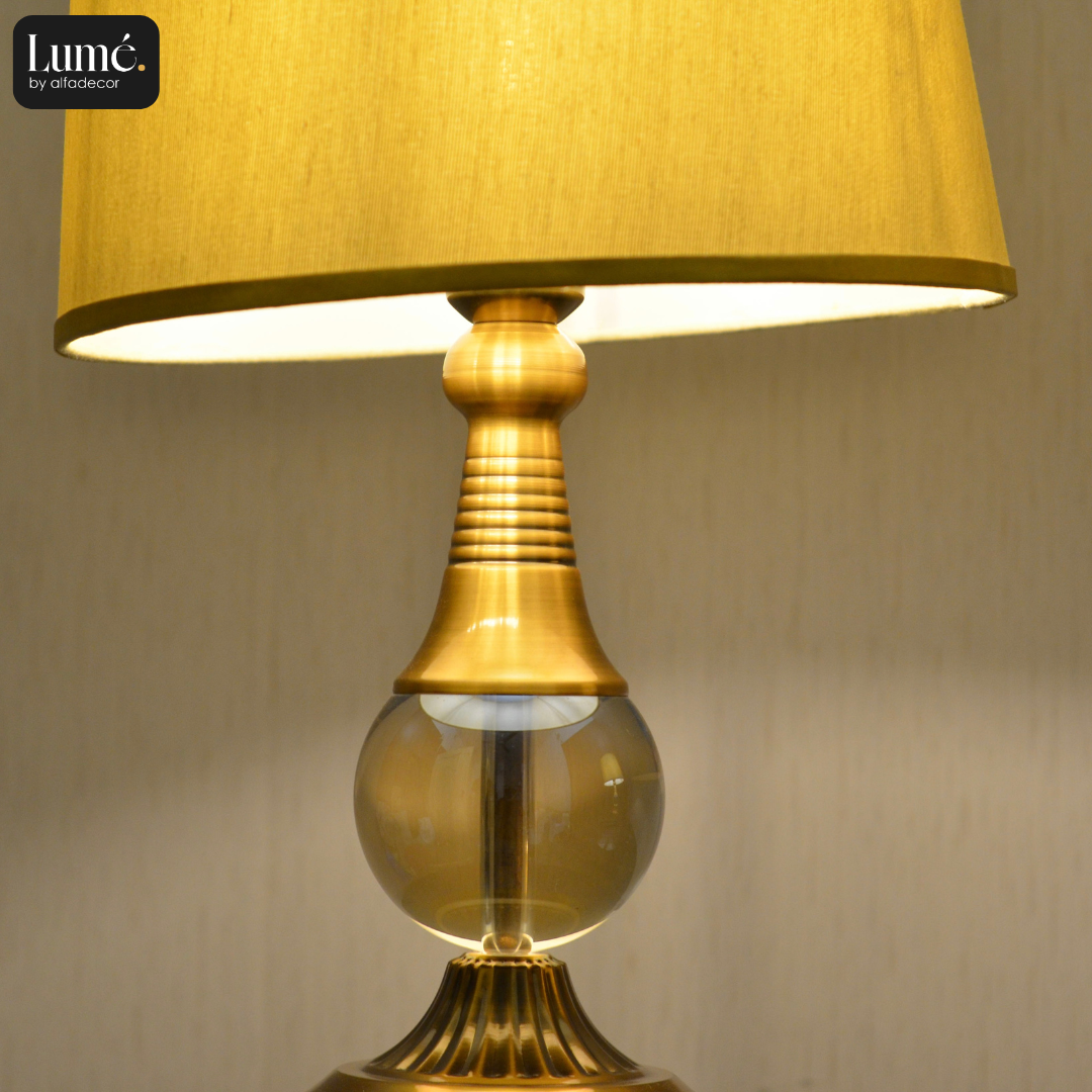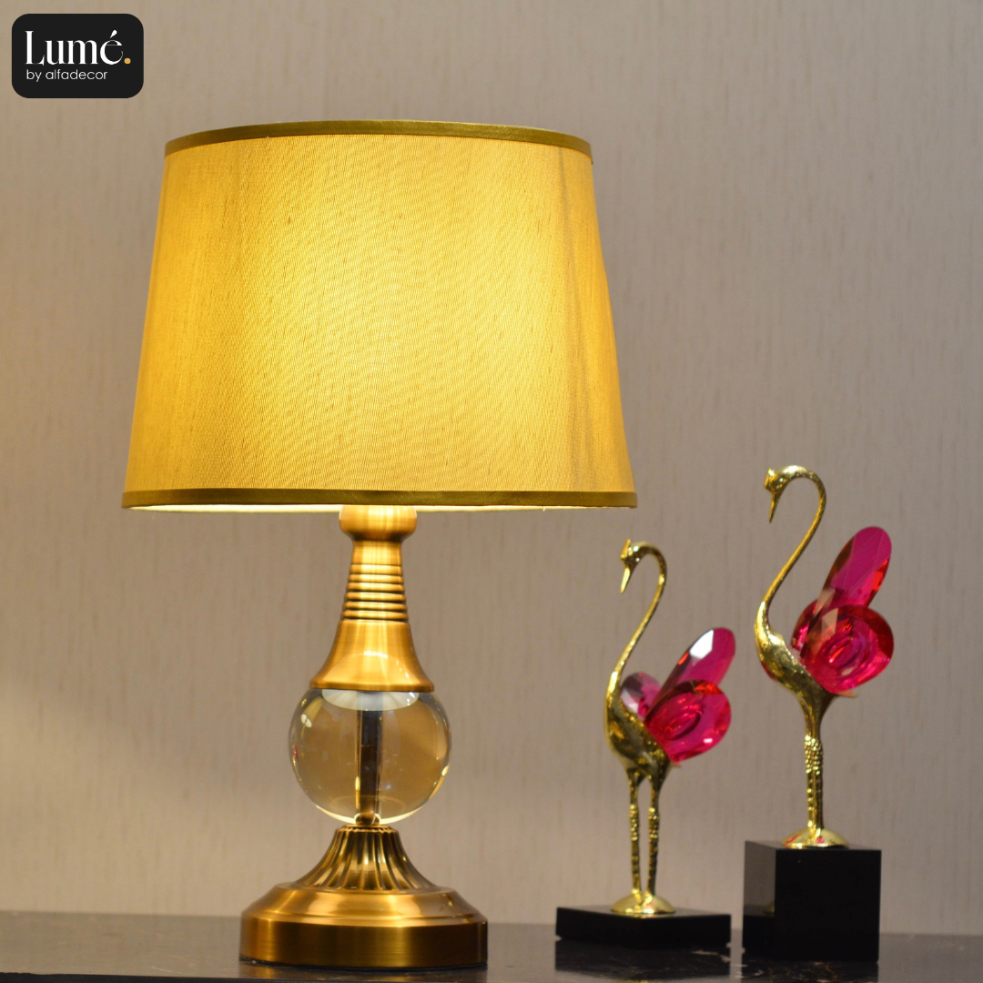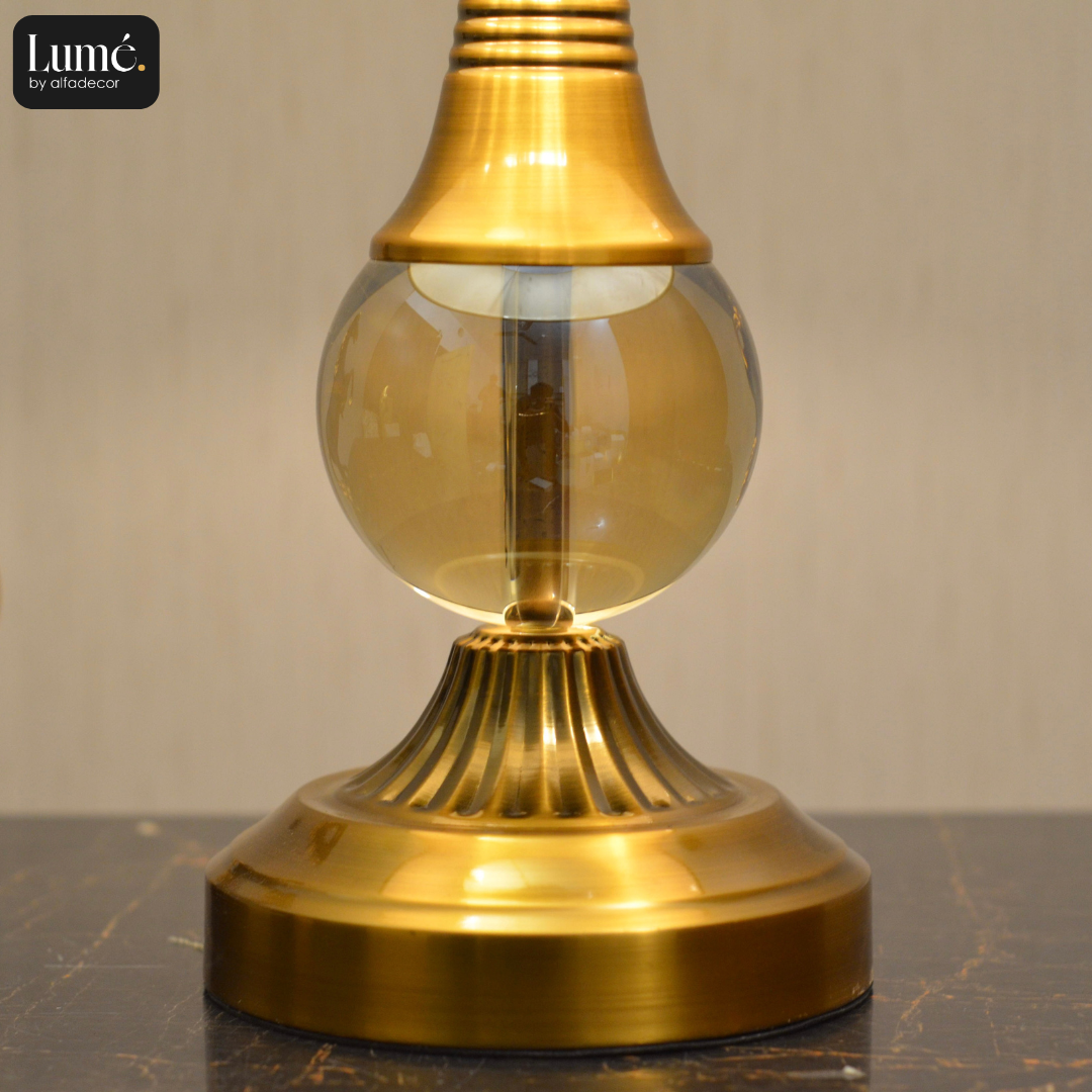 The Clara Crystal Orb Lamp by Lumé combines clarity and charm. A transparent glass orb rests within a golden metal frame, catching and reflecting light in graceful harmony. The soft linen shade complements its form, producing a warm, sophisticated ambiance. Perfect for bedrooms or sitting areas, Clara’s design evokes gentle glamour — where simplicity meets sparkle. The combination of glass and metal adds modern refinement to classic decor, creating a luminous piece that feels both timeless and contemporary. Clara is more than a lamp — it’s poetry in metal and glass.