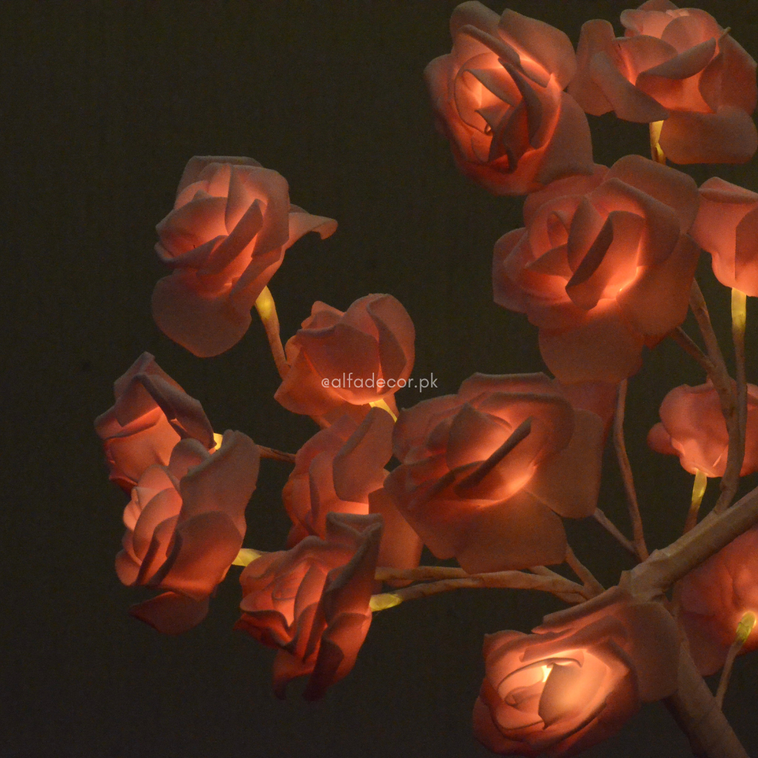 Designed with delicate pink roses that glow softly when lit, this elegant lamp adds a dreamy ambiance to your decor. The handcrafted detailing and flexible branches allow you to shape your own floral arrangement — perfect for adding personality to any corner.